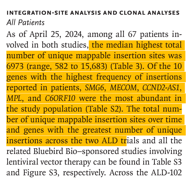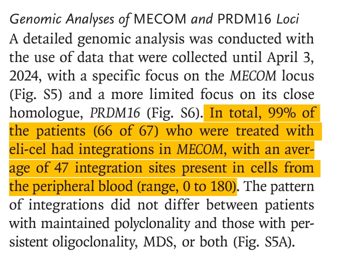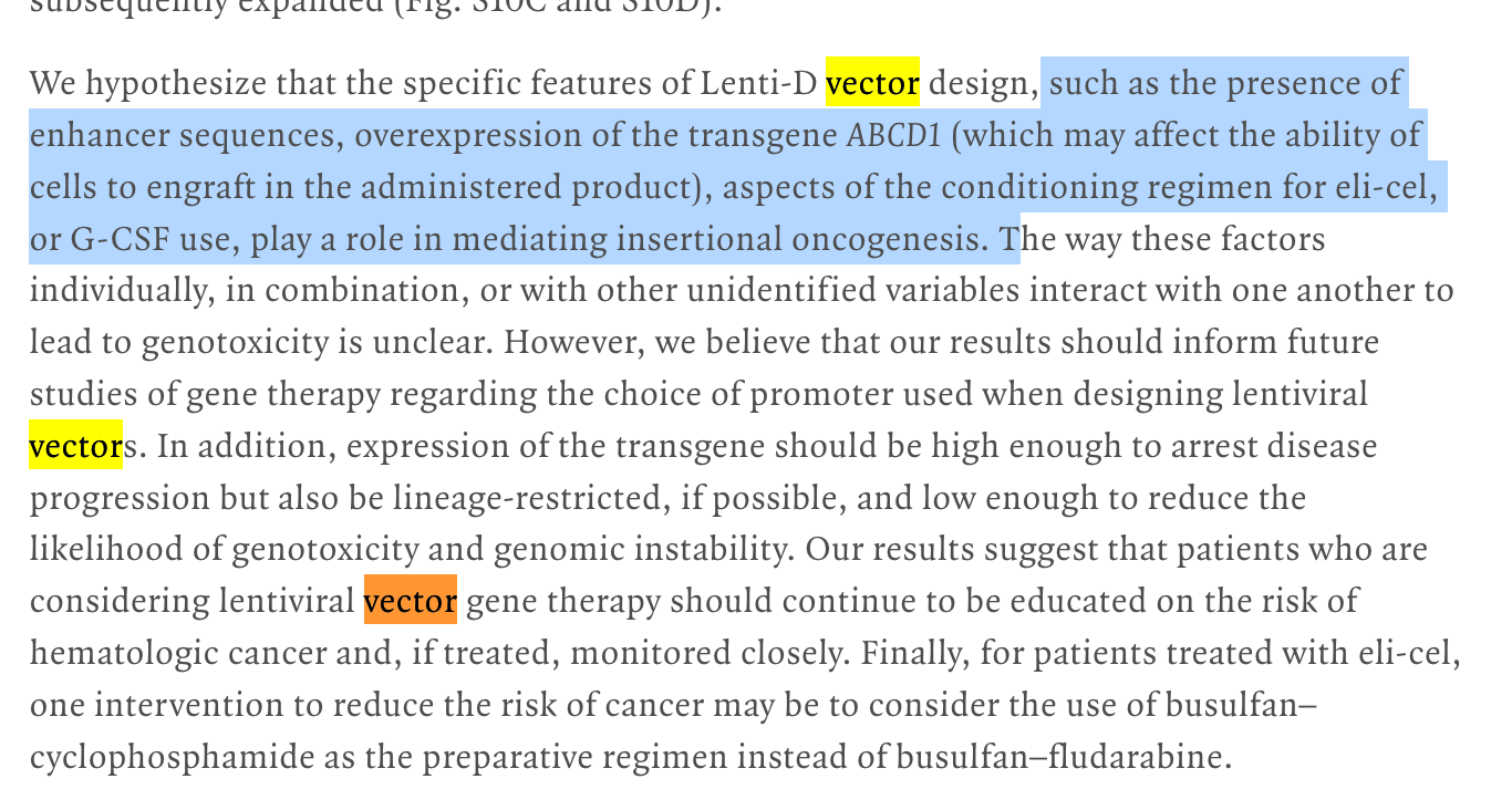 This is a lentiviral vector that likely has a far higher integration rate than the Pfizer SV40 plasmid but it does show you how quickly things can go off the rails once plasmids enter the nucleus. 1000s of integrations sites per patient with 10% of the patients developing a hematologic cancer. Note, not every patients got cancer but 99% had integration events in the MECOM gene. Note, they harvest stem cells from the patient and only expose those to the vector ex-vivo, thus limiting off target bio-distribution of the vector.