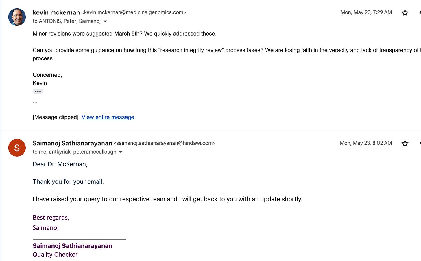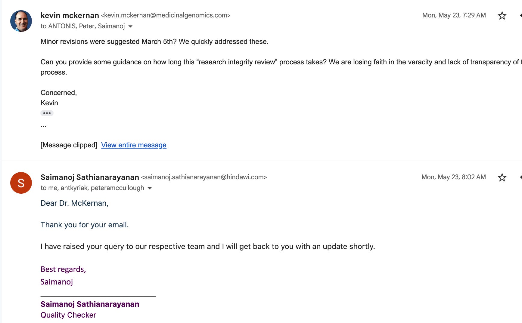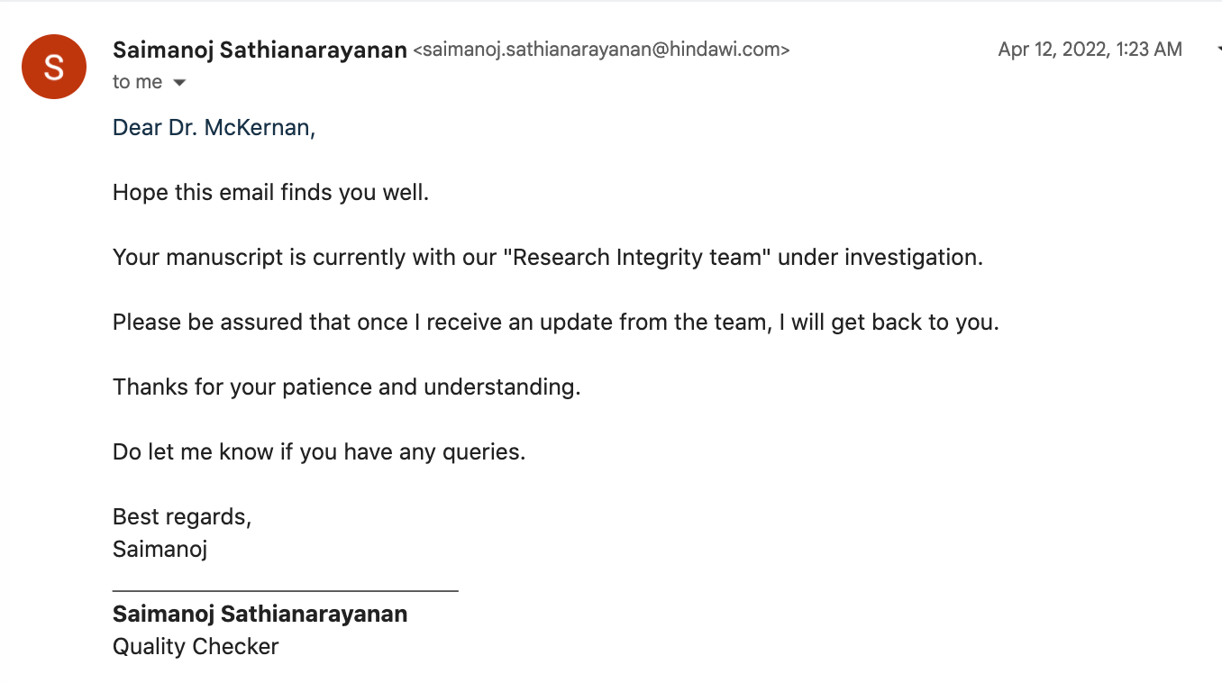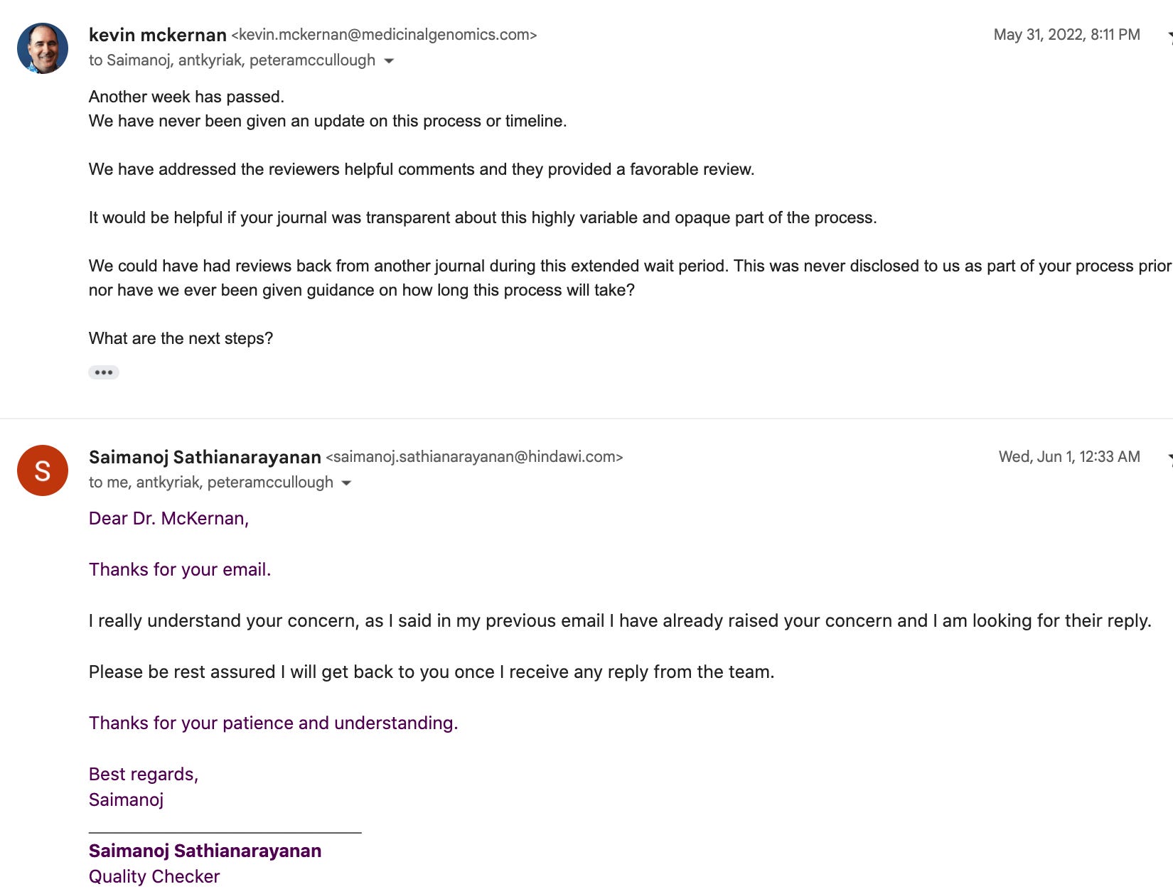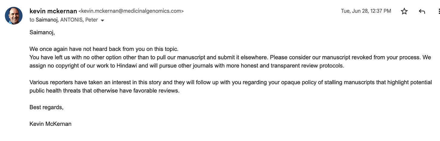 Peter, being an editor was more patient than me but he finally threw in the towel and we aborted ship on Hindawi in Late June.