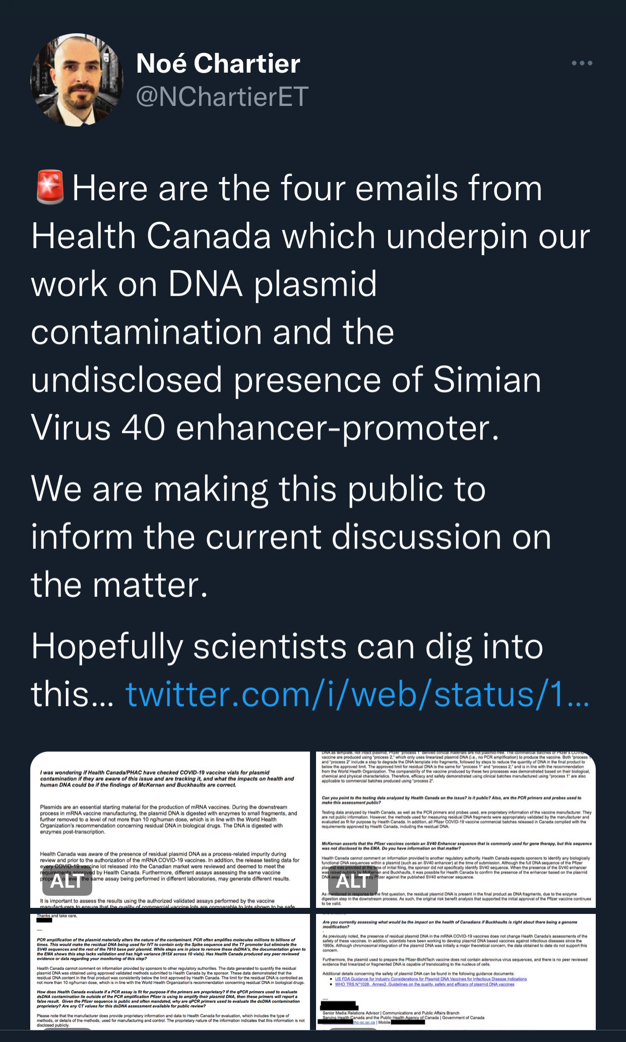 Meanwhile Noe’ dropped the evidence for the Health Canada emails. The shills were out in force claiming it was all fake. Noe brought the receipts.