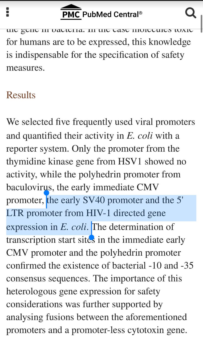SV40 Promoters are active in both Mammalian cells and E.coli so the EMA has likely been given another Pfizer Pfib and should reconnect with them over the functionality of this hidden sequence.