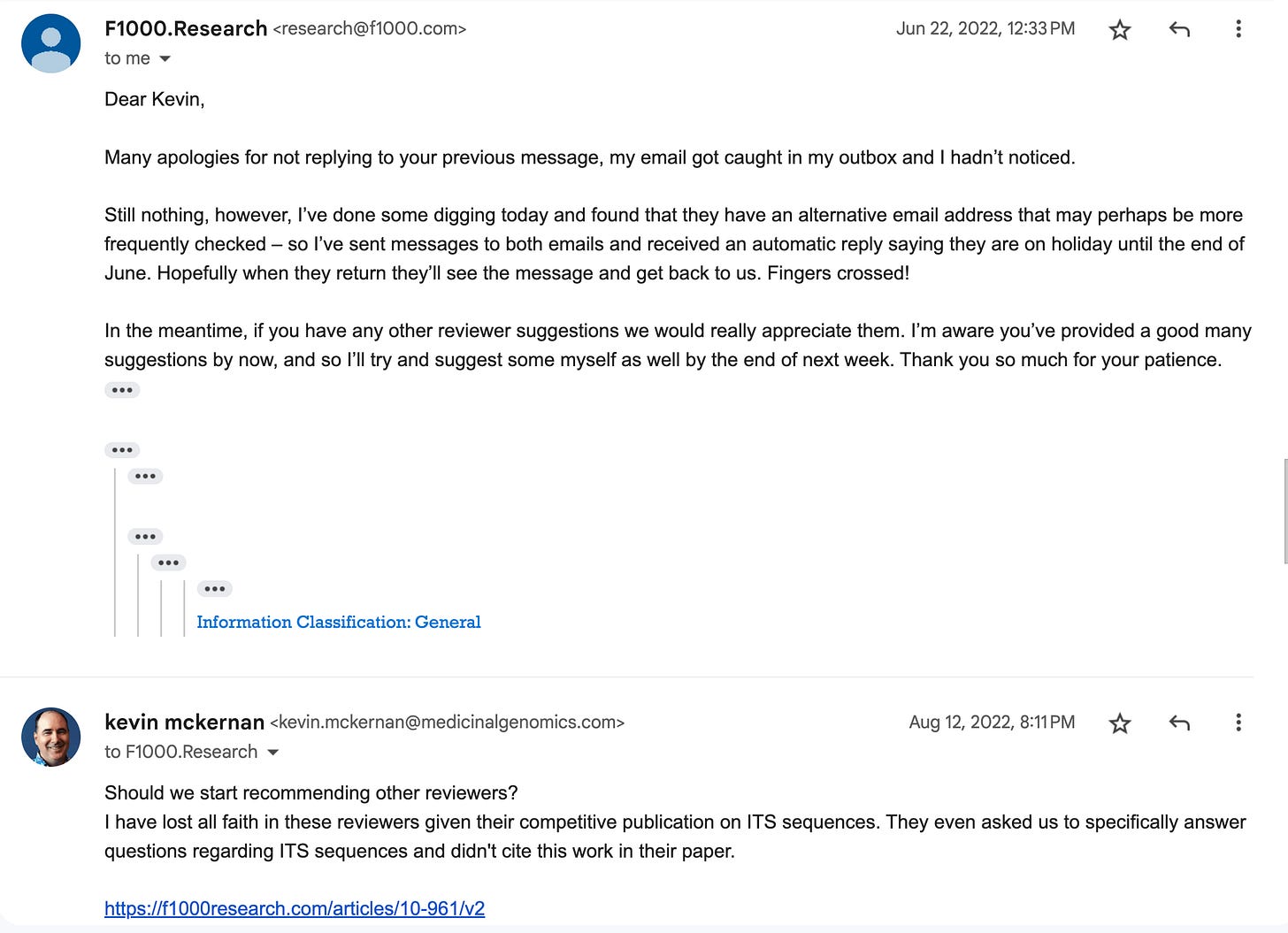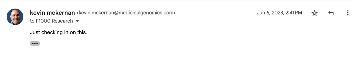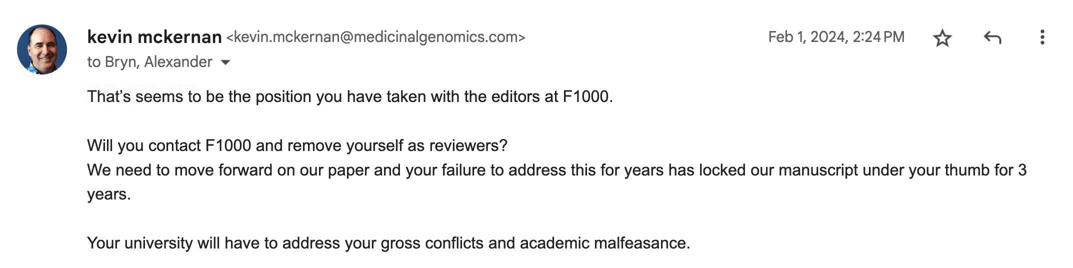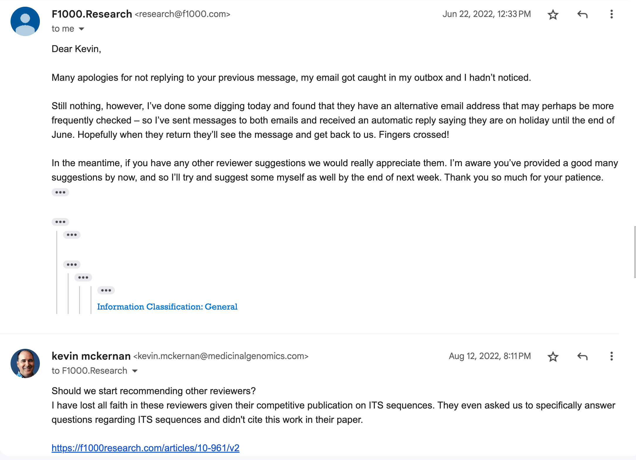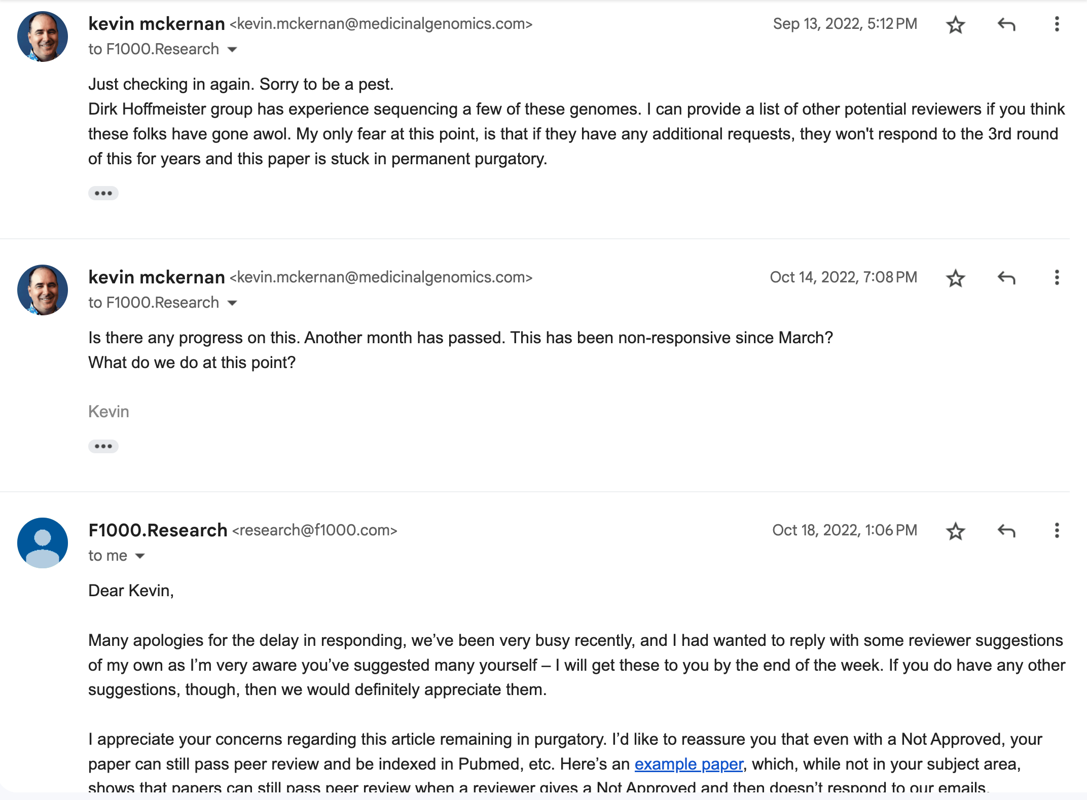So even in fields where you think researchers would have some experience with dissolving their Ego, there is in fact too much to go around. I’m sympathetic for F1000 in all of this. They don’t get paid until the paper publishes. They were tortured with all of this work without any reimbursement. They clearly grew tired of the case and never responded to any emails once Bryn and I were on the same chain. I don’t blame them.