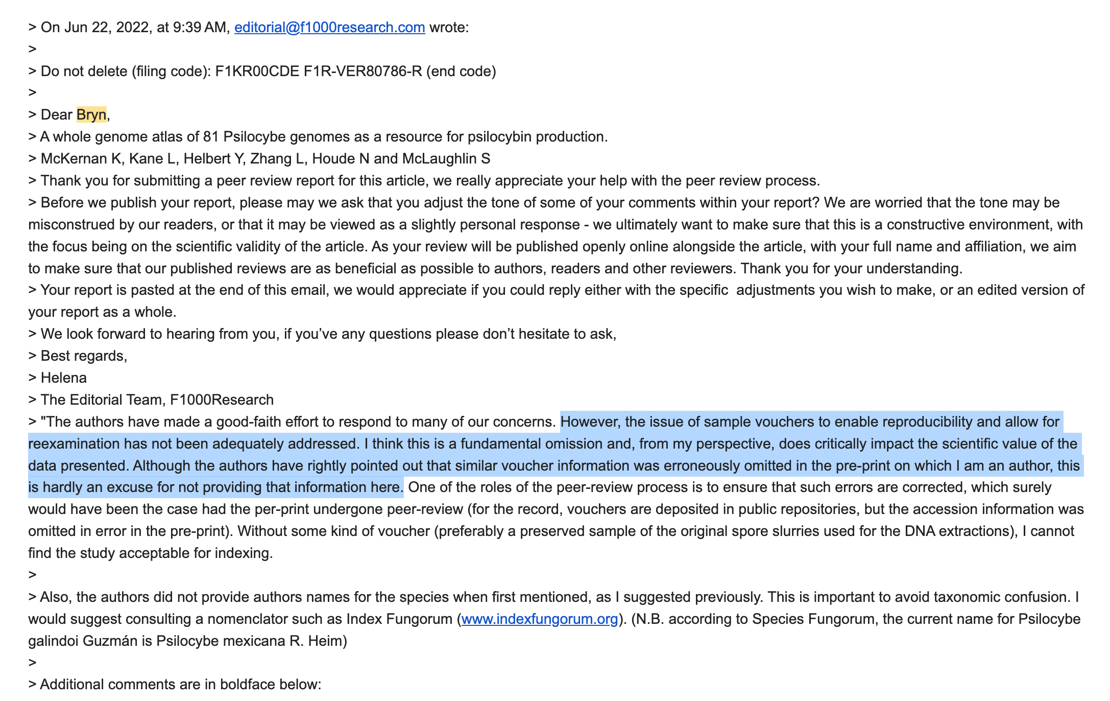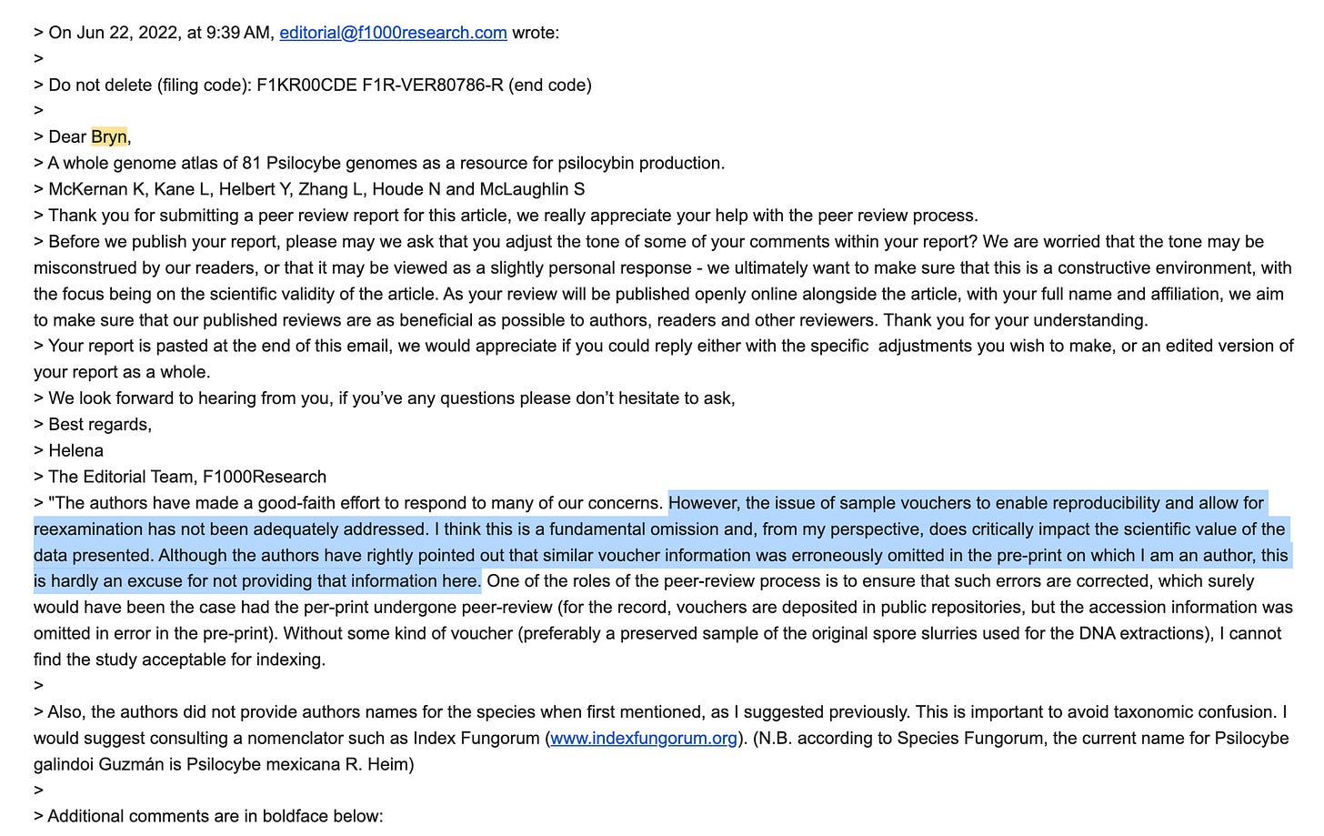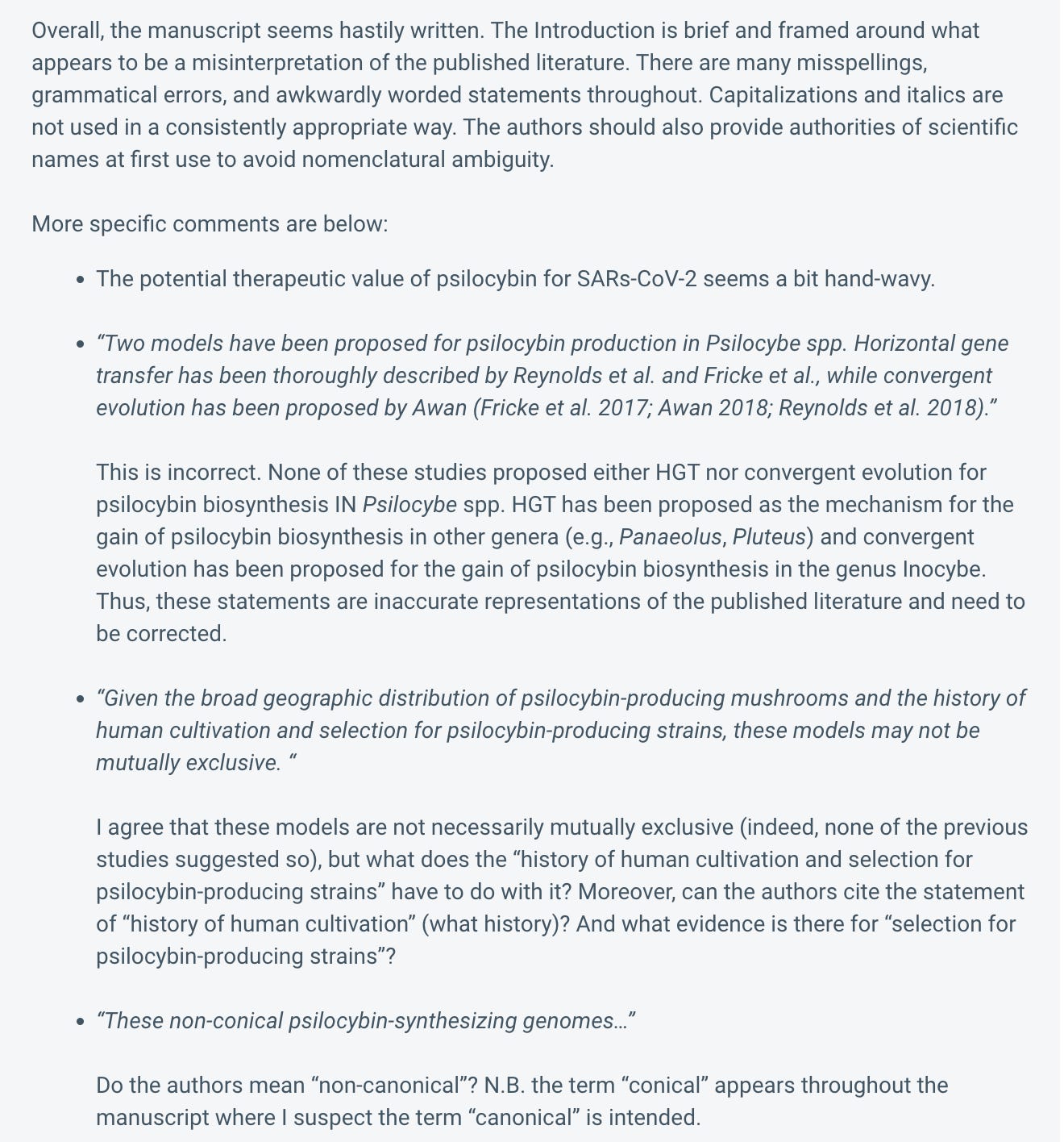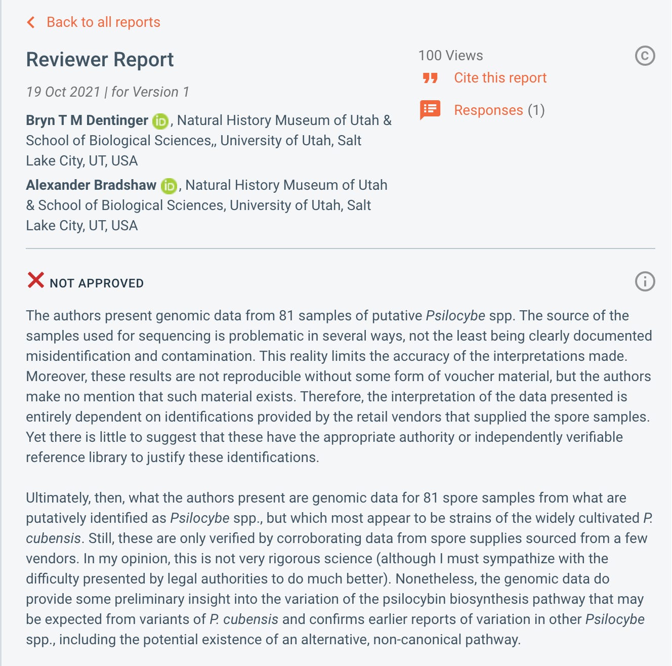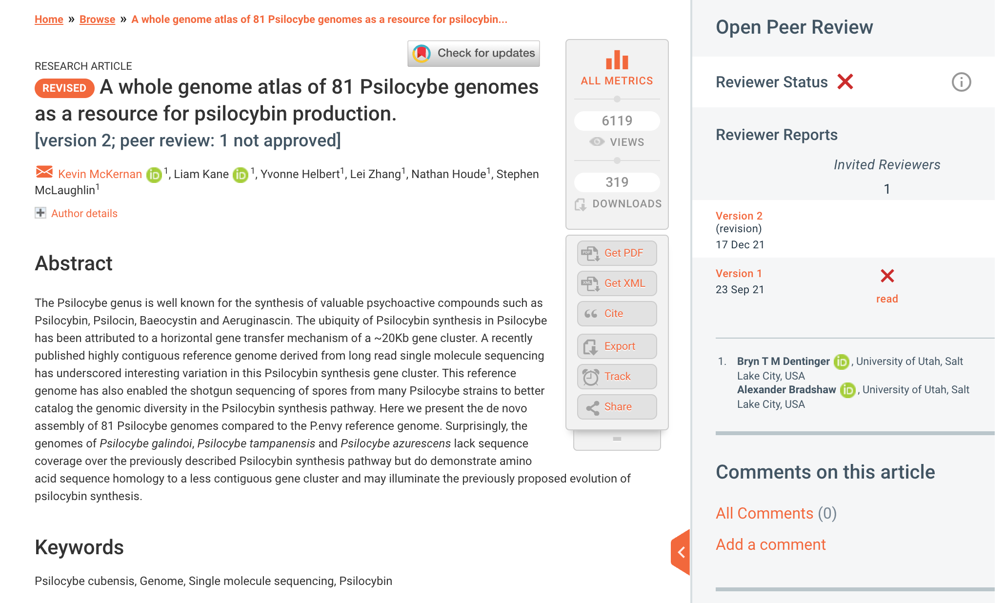 In 2021 we published these 81 Psilocybe genomes in F1000. This is where the Peer Review Drama begins.
