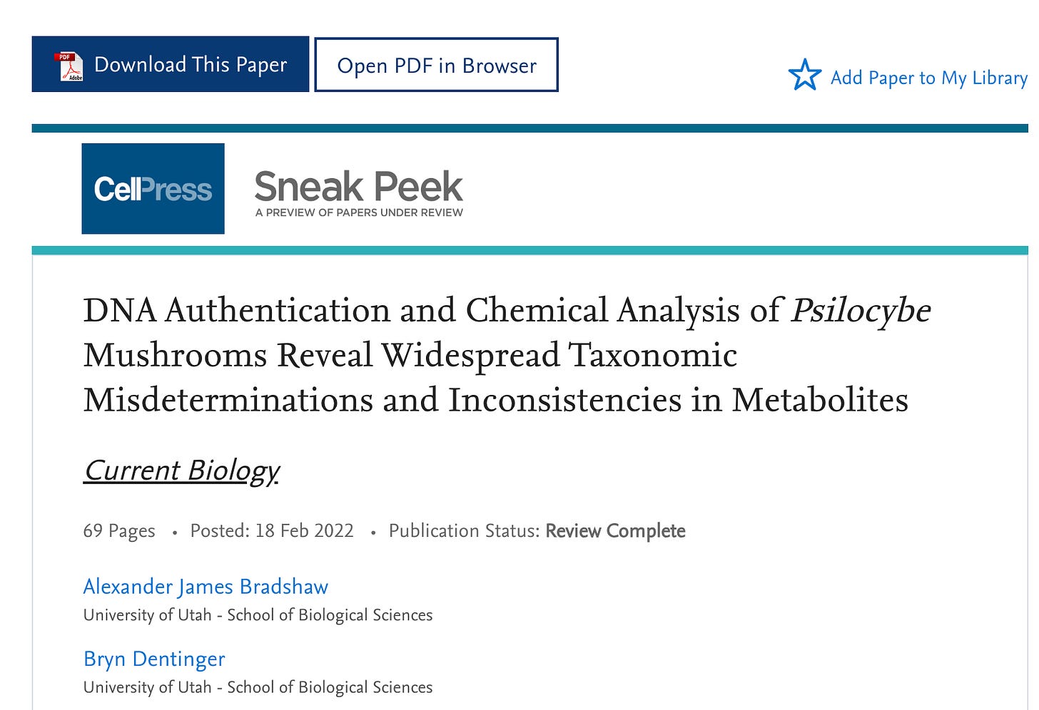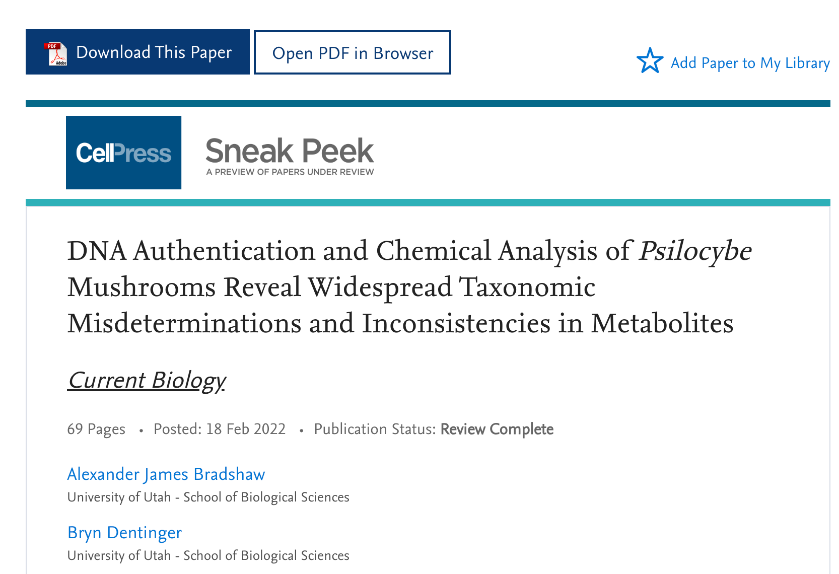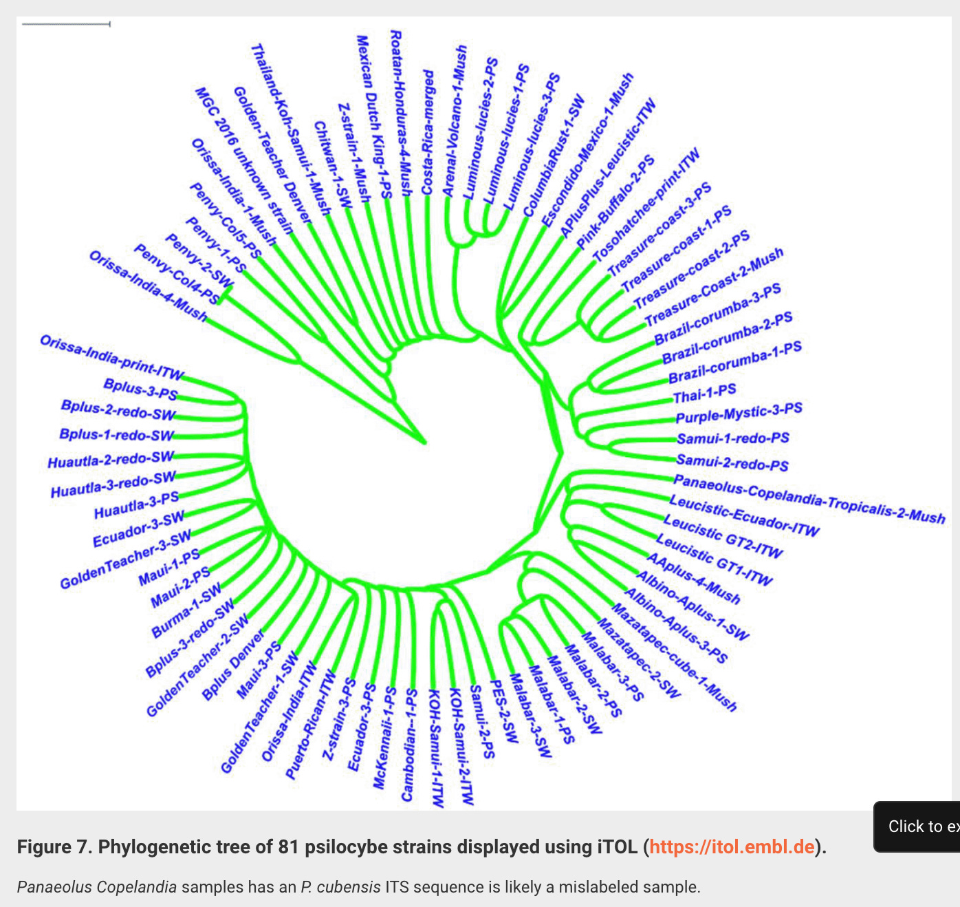 A few months after we submitted our revisions, these Authors published a similar paper behind a paywall. The paper made use of ITS sequences to DNA barcode the Psilocybe samples. Not whole genome sequencing like we performed, but a very cheap and low information content short cut. Nevertheless a good paper.