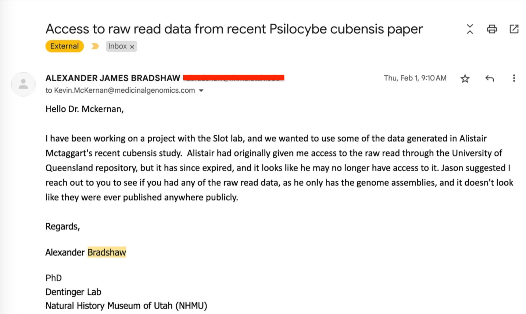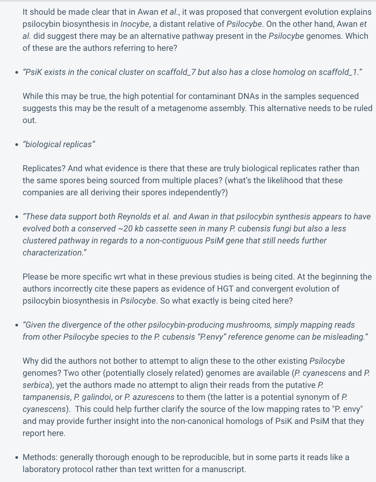 The irony in this request of theirs is that this data was all publicly available from the first paper they rejected! They are looking for the FastQ files which can be found on every sample in Psilocydia which is now 112 genomes large. Much more data than what was pooled together for either paper.