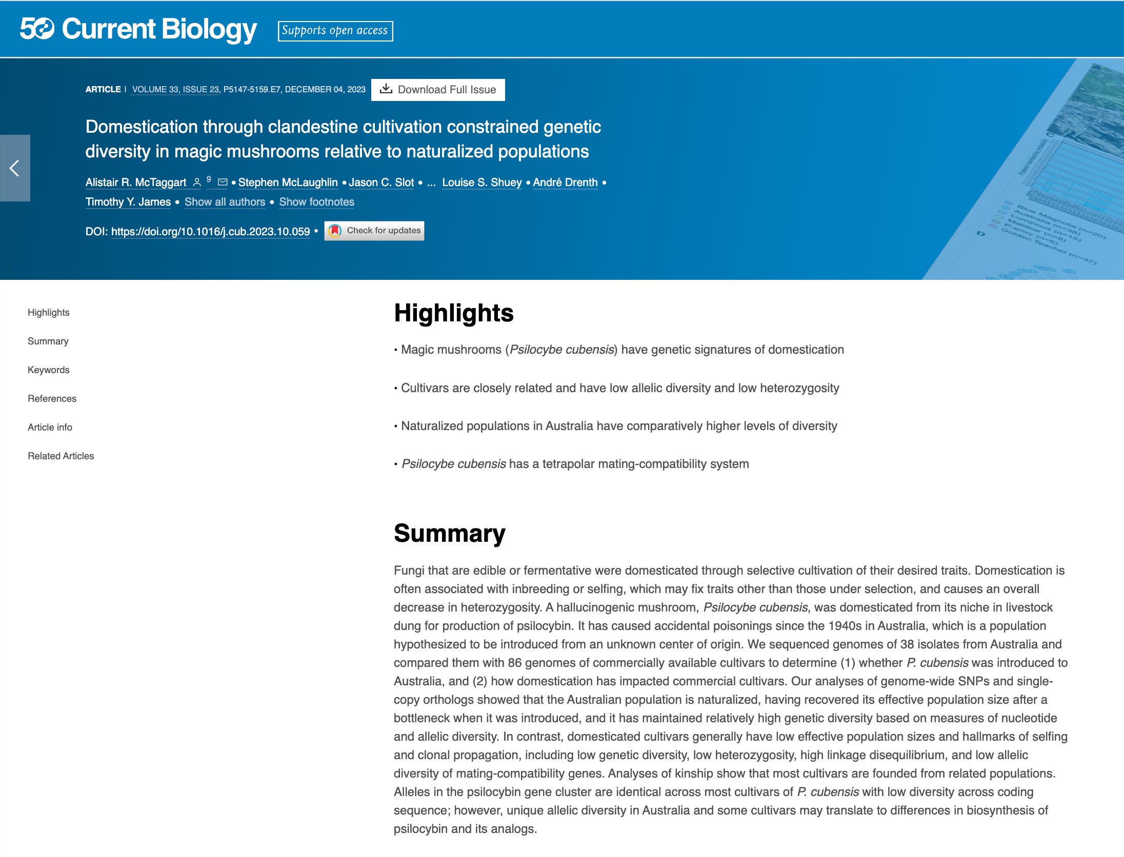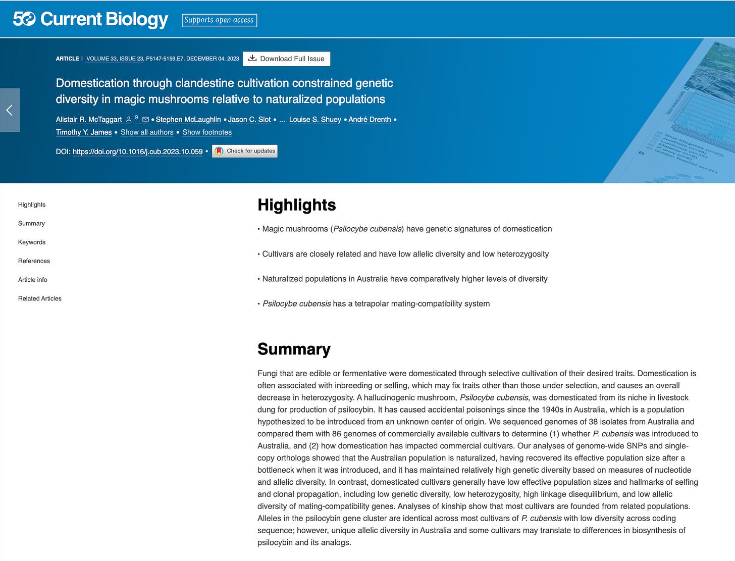 This one was much better written and contained additional data on Psilocybe from Australia. It sails through peer review. Its a much more intriguing paper as it didn’t just document 81 genomes. It used that data to discern if Psilocybe arrived in Australia very recently from commercial spores that were smuggled into the country or if it had an earlier introduction. We conclude that they must have been imported much earlier than spore cultivation was discovered in the 70s. The genetic divergence points to cattle introduction over a century ago.