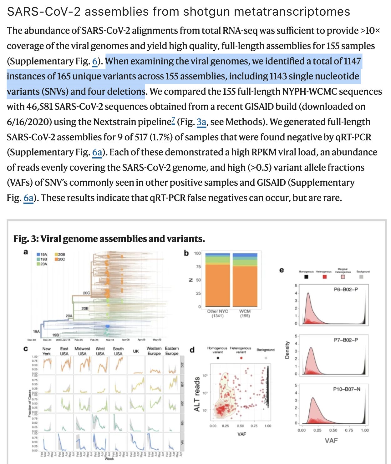 Some other folks in the ‘Virus does not exist” camp tend to equate the process of DNA assembly to ‘Ferguson modeling’. This is far from true and is the most obvious tell that they are not fluent in sequencing technologies or the quality scores that are computed for each base and each alignment. Fergusons work is not predictive and based on speculation. DNA assembly algorithms are first benchmarked on synthetic data and later refined on real world data with known truth sets. 30Kb genomes are easy to assemble. Categorizing all of the subspecies, however, requires specialized assemblers like SAVAGE seen in the above video. Much of the sequencing surveillance is simply mapping to a reference genome and likely only seeing dominant members of the swarm with over 5% allele frequency.