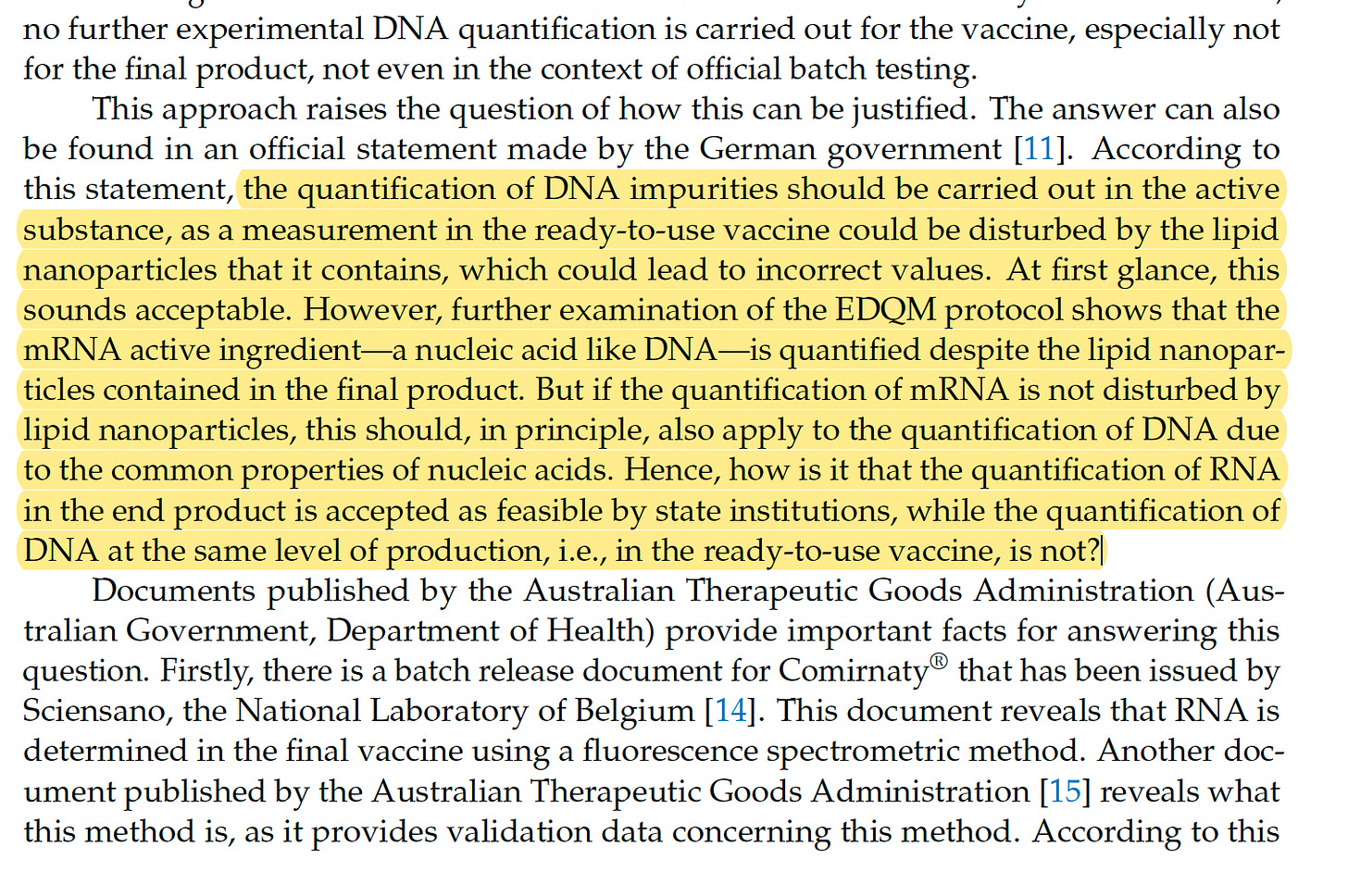 We have also seen qPCR estimates vary 1,000 fold based on using primers that land in Spike versus primers that land outside of spike (See Moderna’s lots with Speicher et al). So Pharma has all the levers they need in order to pull the wool over the regulators eyes as long as they are allowed to measure the RNA with meters (fluorometry) and the DNA with inches (qPCR).