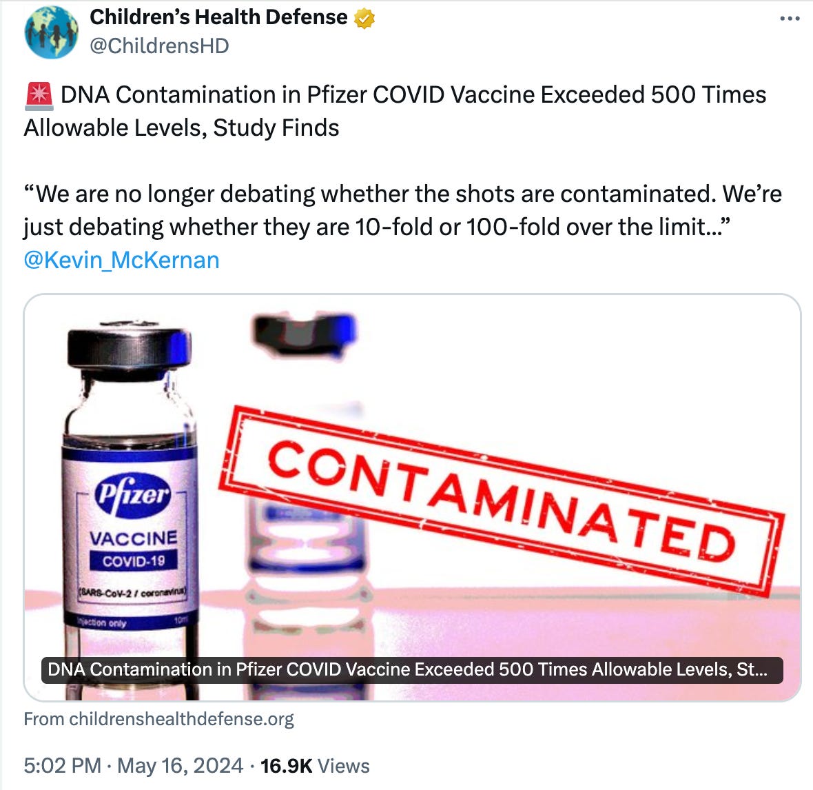 Those alarm bells should ring even louder knowing LNPs are in the picture and the FDA limits were derived from naked DNA contamination that has a 10 minute half life in the blood. Once LNP protected, this degradation cannot be relied upon and the limits need to be much lower.