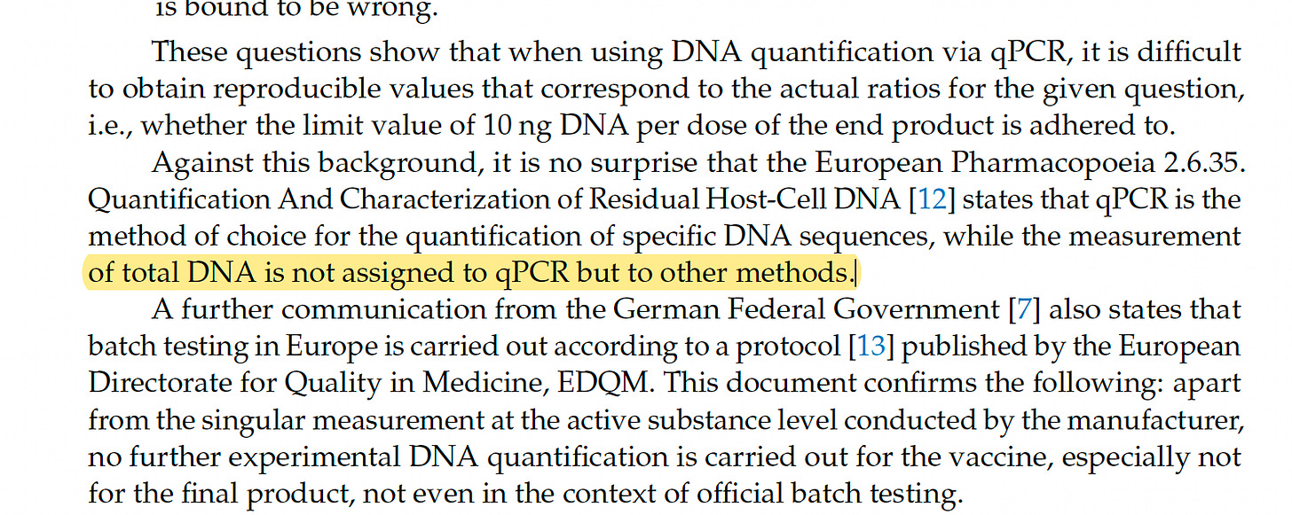 Konig et al then go on to correctly point out that the RNA and DNA should both be measured at the same end point in manufacturing using the SAME tool. This is a point we have been raising for nearly a year now in two previous preprints.
