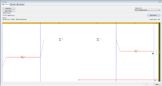 These conditions work for both qPCR and RT-qPCR. Note: The 50°C RT step can be skipped with qPCR. The MGC qPCR MasterMix kits used have a hot start enzyme which are unaffected by this 50°C step. For the sake of controlling RNA to DNA comparisons, we have put qPCR and RT-qPCR assays on the same plate and run the below program with the RT step included for all samples.