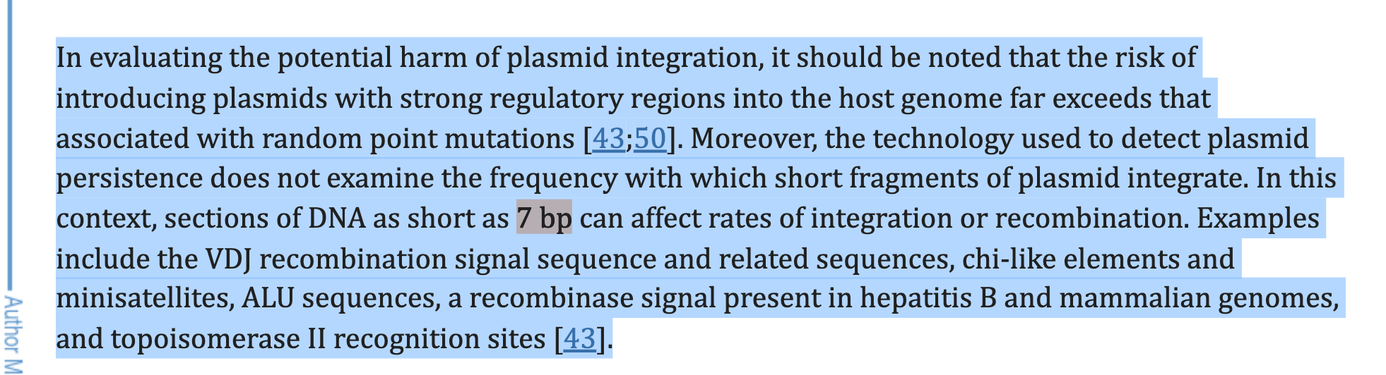 Also, Klinman et al is an important reference in the Speicher et al preprint that goes over integration risks under 200bp and even suggests events as small as 7bp are material.