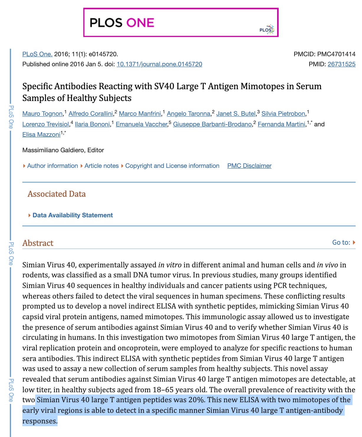What Dan was unaware of, was the mountain of literature cancer jocks have at their fingerprints that points to SV40's roll in cancer is multifaceted but its interaction with the guardian of the genome “p53” is one of the more notable issues.