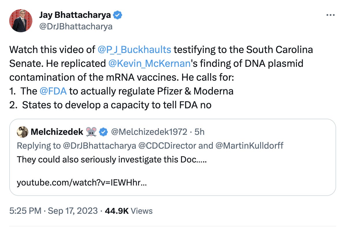 One of the more sobering perspectives on covid public health policy is also taking note. Jay has been the voice of reason on lockdown policies and their economic and health impact. He has championed ‘focused protection’ with vaccination being one of the many tools in that tool chest. He is by no means an Anti-vaxxer but an open mind.