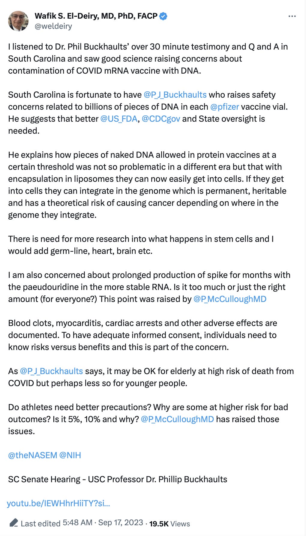 A very sobering and honest delivery on the state of the dsDNA contamination in the mRNA vaccines was delivered to the South Carolina Senate this week. Video link here.