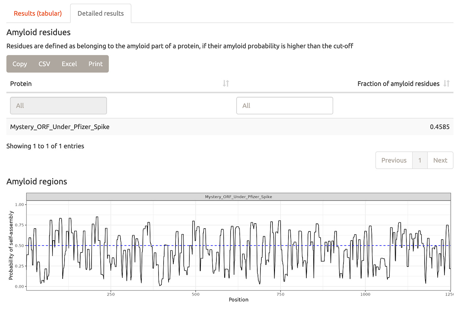 The other possibility causing the transcription of this mystery ORF is that T7 Polymerase strand flips when making the 1273 amino ORF onto the other Mystery ORF strand. During the process of making the RNA from the DNA, the polymerase decides to switch templates. Like a photocopier getting confused on printing on both sides or one side of a page, these polymerases can sometimes meet a RNA molecule that hairpins on itself due to palindromes in the sequence and flip strands and start making RNA in the reverse direction. In this case the reverse direction encodes an amylodogenic peptide.