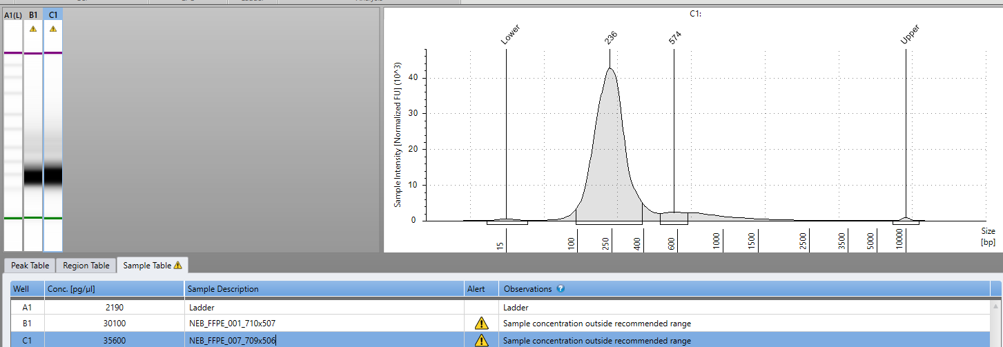 PCR samples were purified using 0.9X Ampure and evaluated on an Agilent Tape Station for insert size and quantity.
