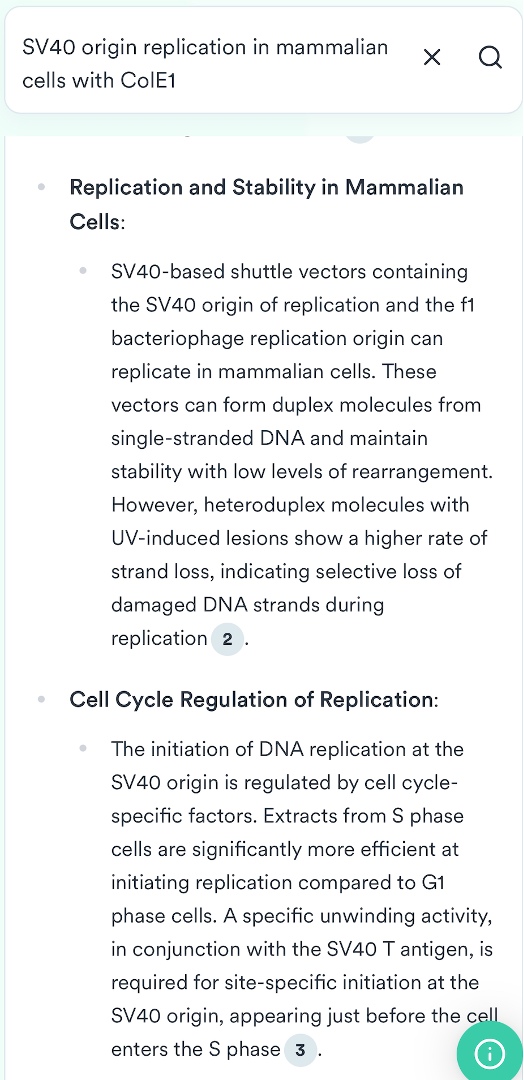 For those not familiar with the Pfizer vaccine it contains 3 origins of replication: a SV40 ori, a ColE1 ori and a F1 origin of replication. Consensus.app found a few papers that demonstrate SV40 Origins of replication can replicate in mammalian cells without SV40 Large Tumor Antigen. The requirements are a ColE1 and F1 origin, both of which exist in the Pfizer plasmid. A 3rd mechanism of SV40 ori replication requires S/MARs domains which are found in Beta Globin sequences. The Pfizer vaccine also has beta globin UTRs which need further exploring regarding their capacity to emulate a S/MAR domain.