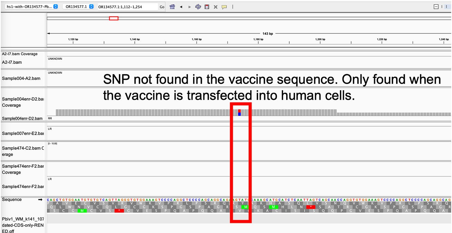 Lab vaccine contamination would also not deliver the variants we are seeing in the sequence data. As demonstrated in our OVCAR3 study, If you simply mix naked vaccine DNA with FFPE gDNA and sequence them, you don’t see the SNPs the cells are making. We have a very specific signature that this DNA has been modified by transfection into cells in a way I don’t think any researcher could hack together to create a scam.