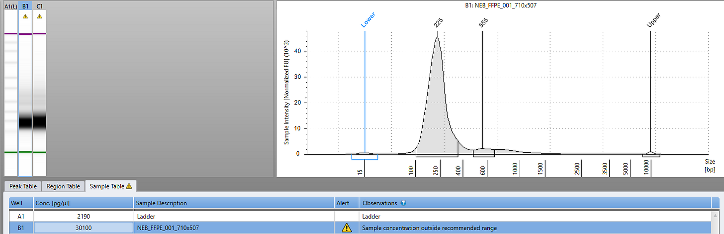 We performed 0.6X sequence coverage of this sample to assess how well this FFPE DNA was going to sequence. FFPE DNA is notorious to sequence as its often cross linked and contains abasic sites.
