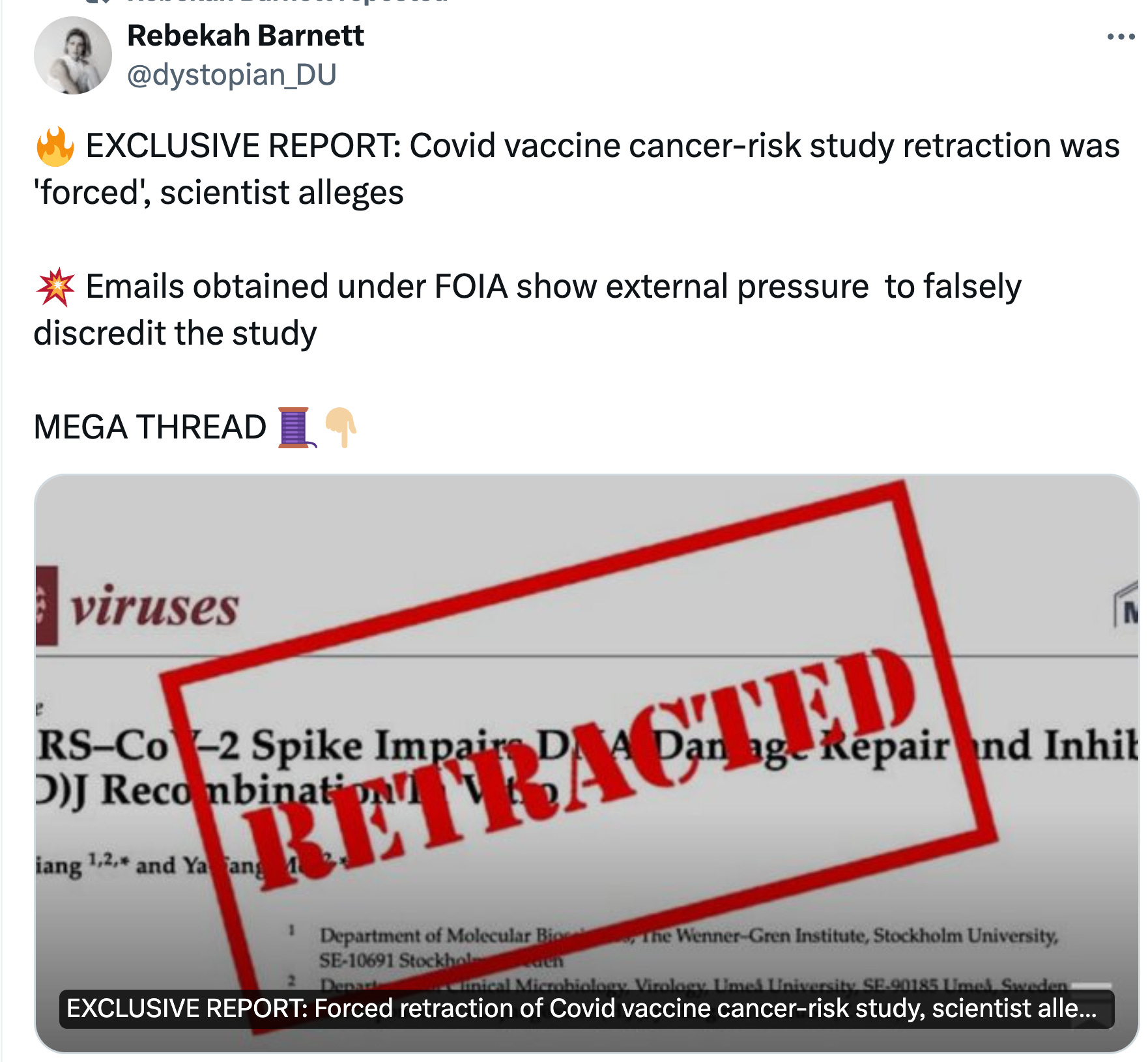 Given the accelerating rates of Cancer seen post vaccination (See Unacceptable Jessicalatest NCI presentation on this), the corrupt retraction initiated by NIH employees is as big of a scandal as the Fauci GOF emails. I would argue its a bigger deal as COVID was relatively mild compared to the vaccines.
