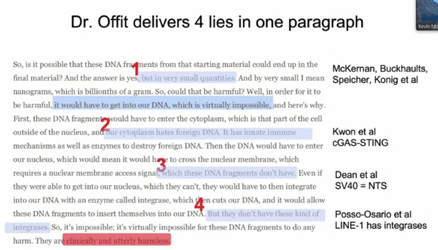 Dr. Paul Offit is employed at UPENN and has been an overt fraud defending this DNA contamination. I cover this fraud in my NCI testimony: 40 minutes into this presentation. Paul is frequently cited by fackcheckers as the go to person to debunk anti-vaxxers. On the DNA contamination, he delivers 4 lies in one paragraph.