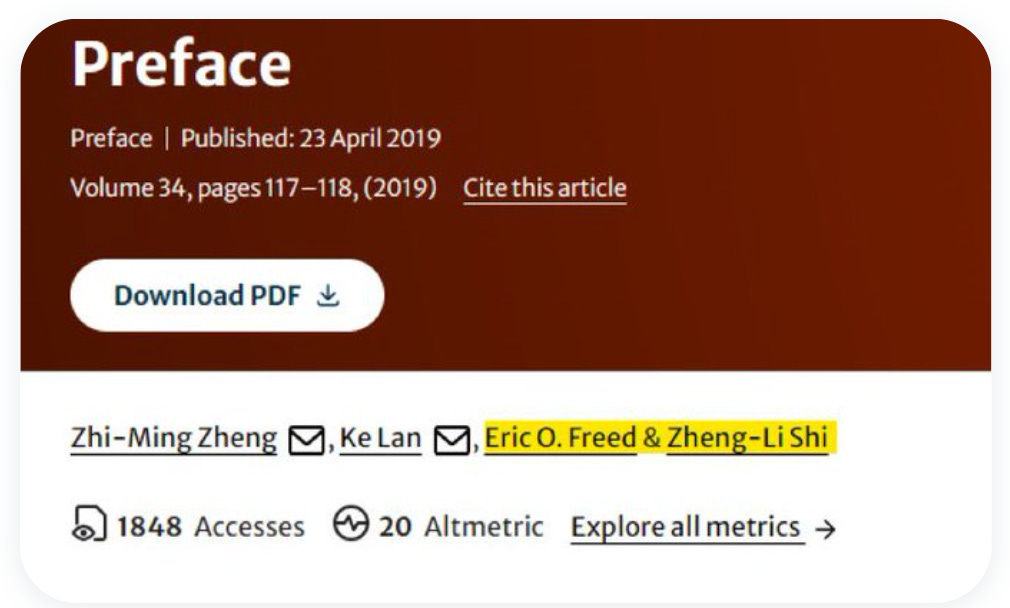 And just to round out the story, BROKEN TRUTH discovered that this Eric Freed also published with Zheng-Li Shi also known as ‘Bat Lady’ from the WIV.