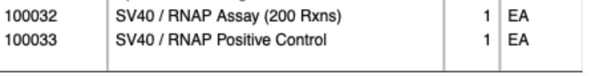 SV40/RNAP- This assay is optional. It targets the SV40 region of Pfizer. It will not be positive on Moderna or J&J. The RNAP is the Internal Control. This can be obtained from IDT. If you are only testing vaccines, you do not need the RNAP primer probe spike. If you are testing human tissues, we advise the 0.5ul spike in for RNaseP CY5 Primer-Probe aliquot