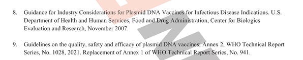Citations 8 & 9 are HHS and WHO documents. Citation 8 is ignored as its from 2007 and doesn’t contemplate LNP protected DNA.