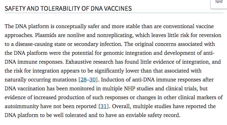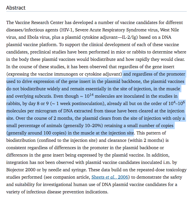 This vaccine does not have LNPs and its evident when you see the biodistribution of the plasmid. Its stuck in non-dividing muscle. Same Trick. Cite something that has plasmid vaccine in the name and fail to address the core concerns we have raised.