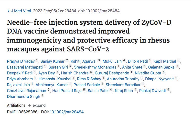 This cites a needle free DNA vaccine known as ZyCoV-D?