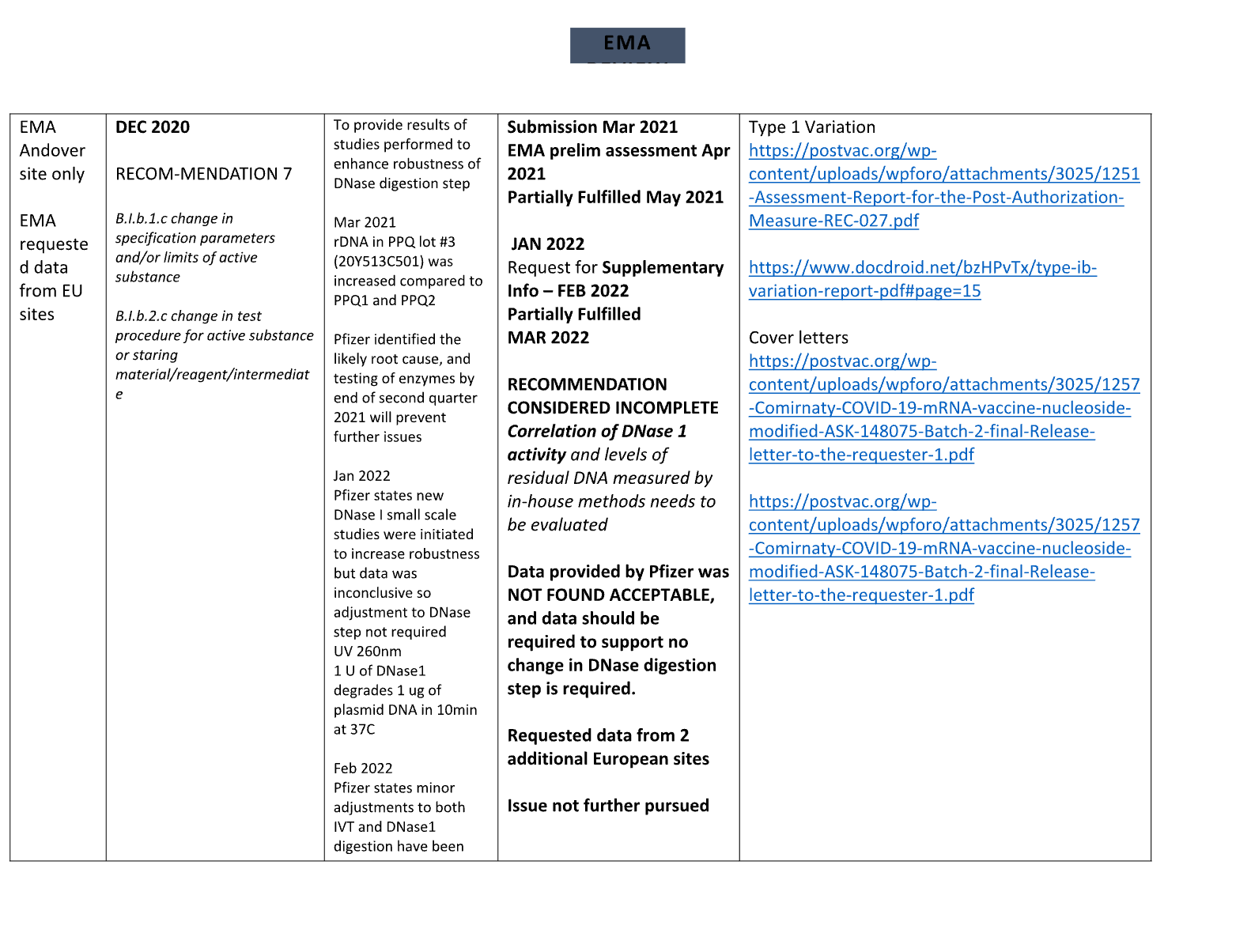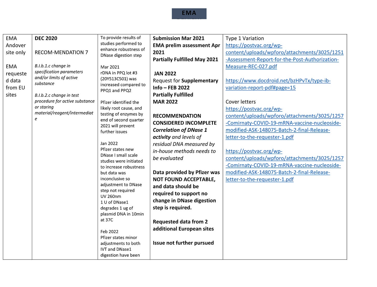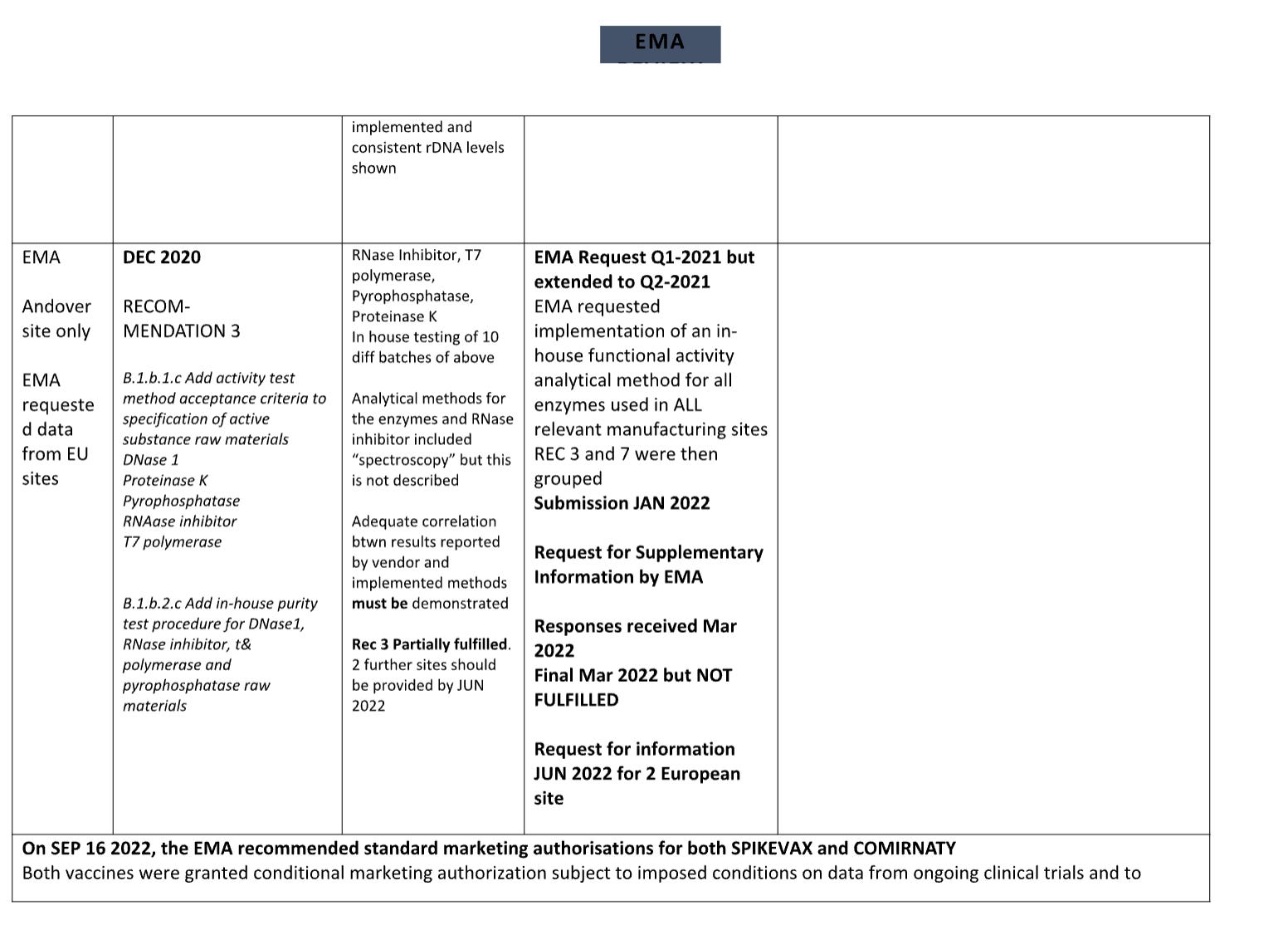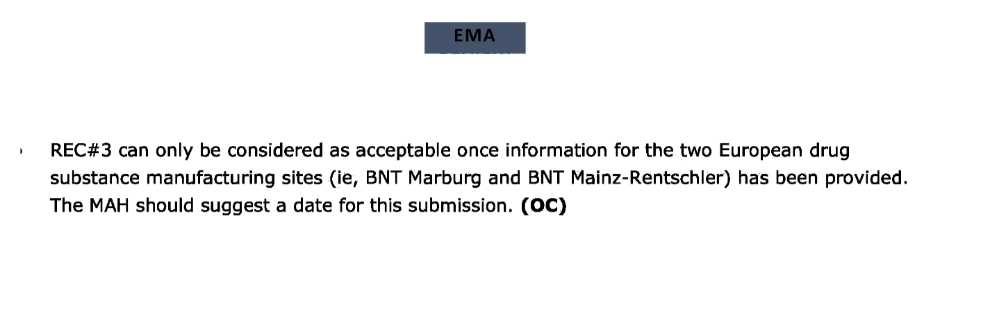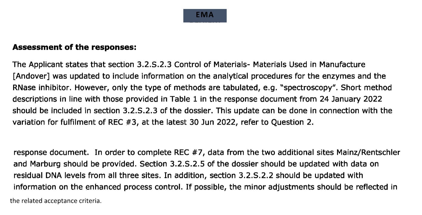 When a business wants to change the methods they are measured by every time you turn away, (RiboGreen for RNA, qPCR for DNA, UV spec for final product) you are dealing with scam artists and I doubt the regulators are this dim. I’m beginning to think they know this is a farce but that the public will never figure it out, or by the time they do, they will have a cozy job at Pfizer.