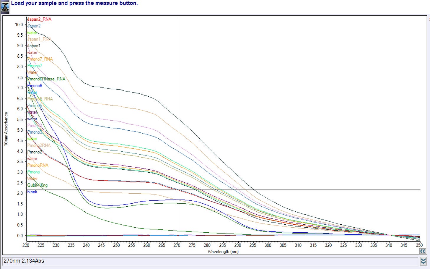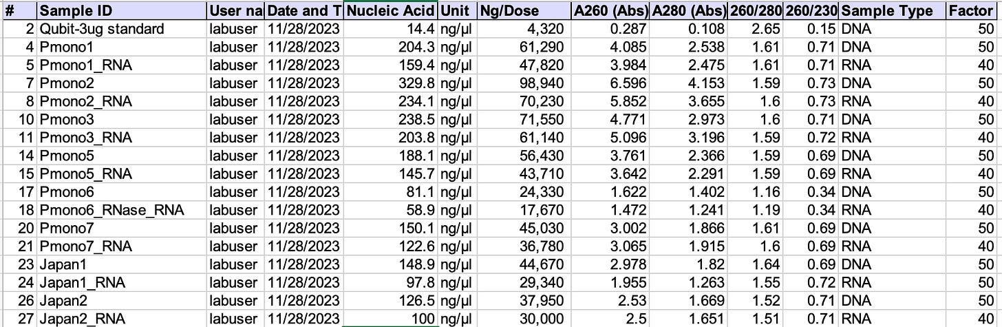 The take home message is that this read out is NOT specific to DNA or RNA. It’s a UV absorbance of all molecules present and I have no idea what LNPs, ALC-00315 or other ingredients in the vaccine may do to these readings.