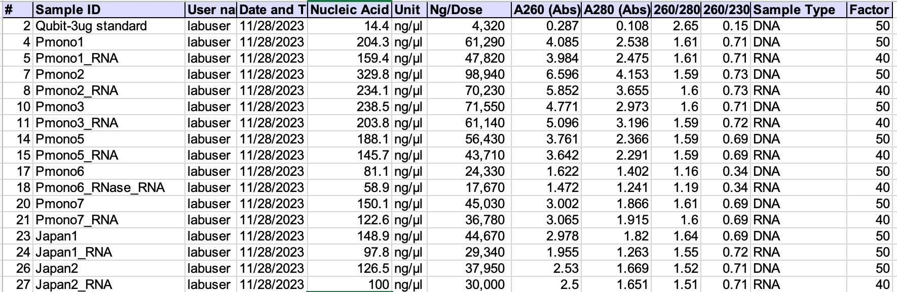 Fair point. Our purification of the DNA/RNA from the vaccine likely lost a lot of the material so lets remeasure this on 1ul of the vaccine itself.