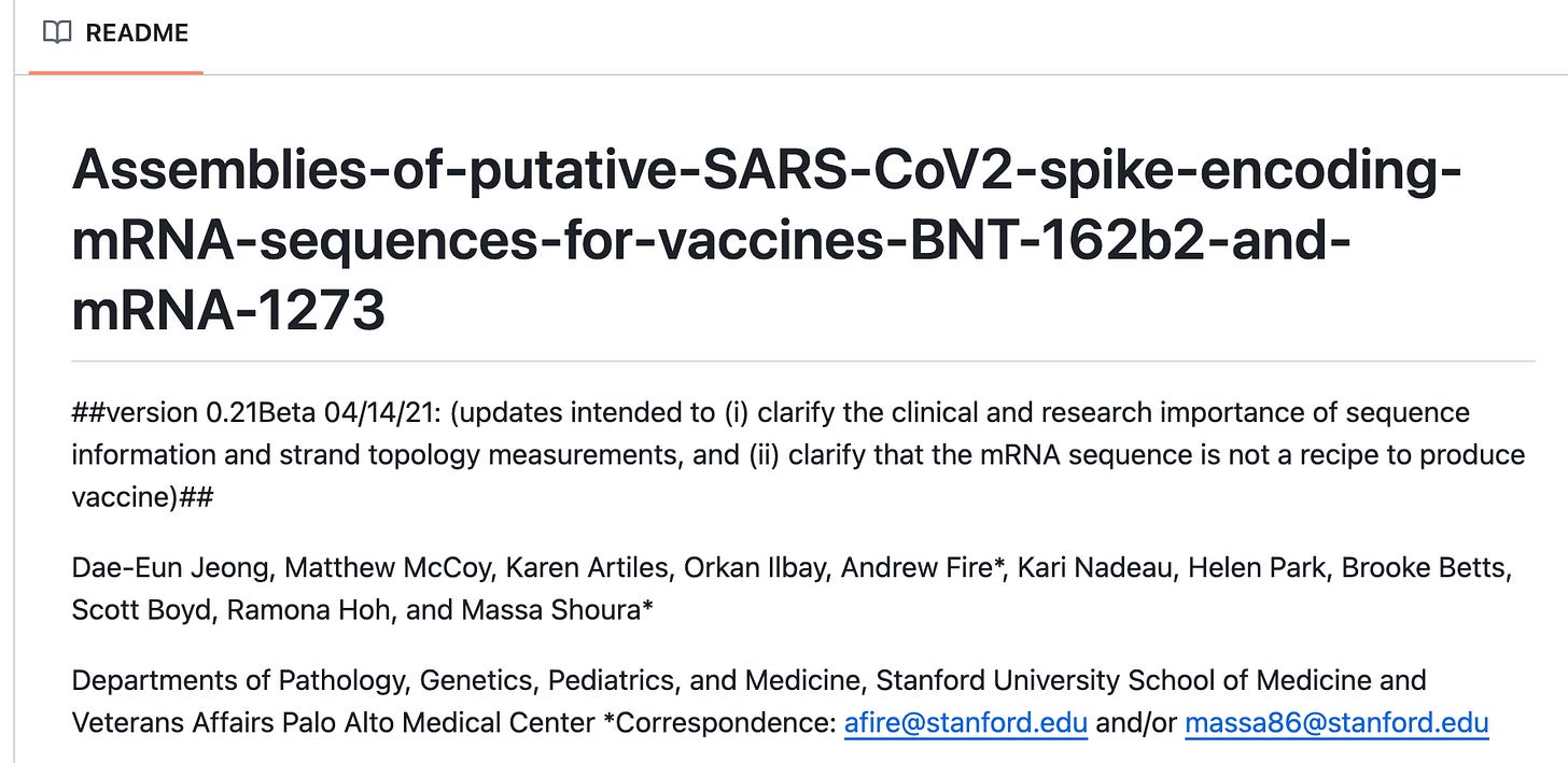 You may recognize the Fire labs name from when they sequenced the vaccines and DIDNT put such raw read sequence public despite frequent requests to do so.