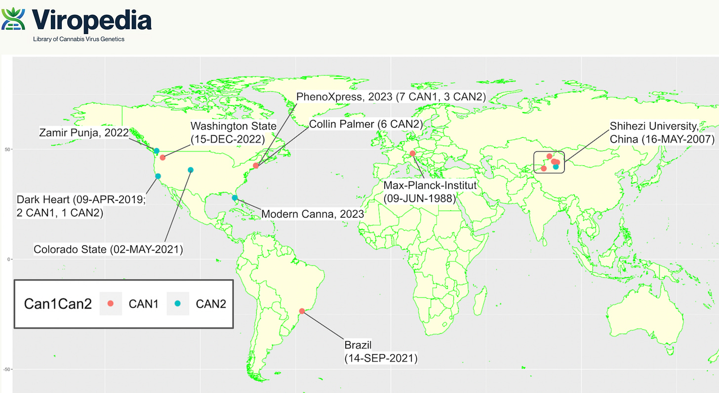 Followers of this stack know that we spend a lot of time studying Hop Latent Viroid that infects the cannabis plant. This is an excellent example that melts the minds of the ‘no-virus’ and ‘PCR is useless’ camp.