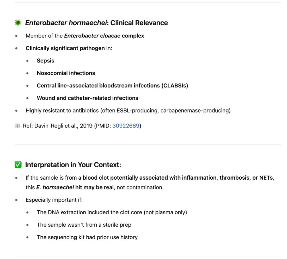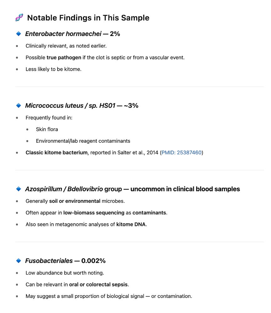 If you zoom in on the bacteria found in the sample you can see bacteria often found in vascular events.