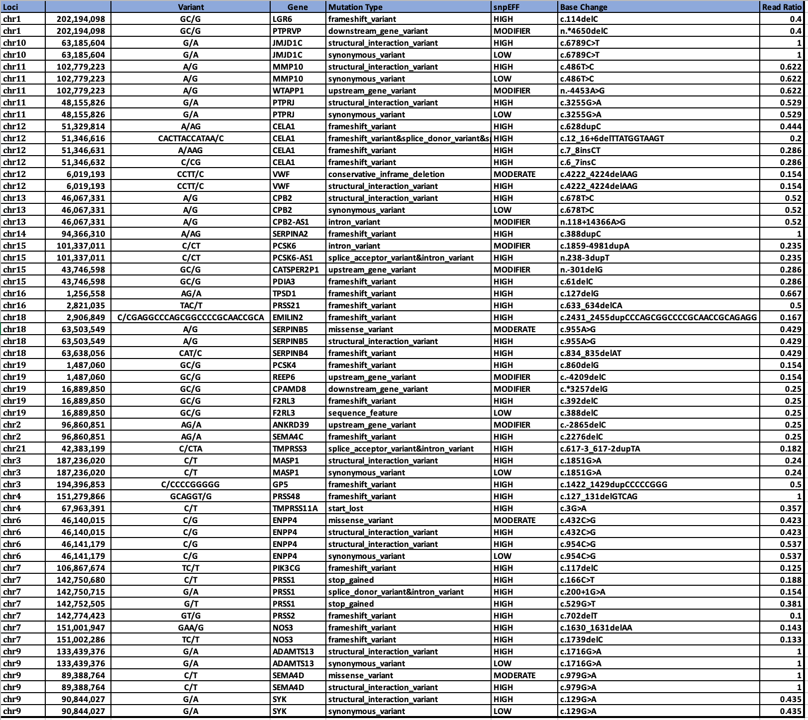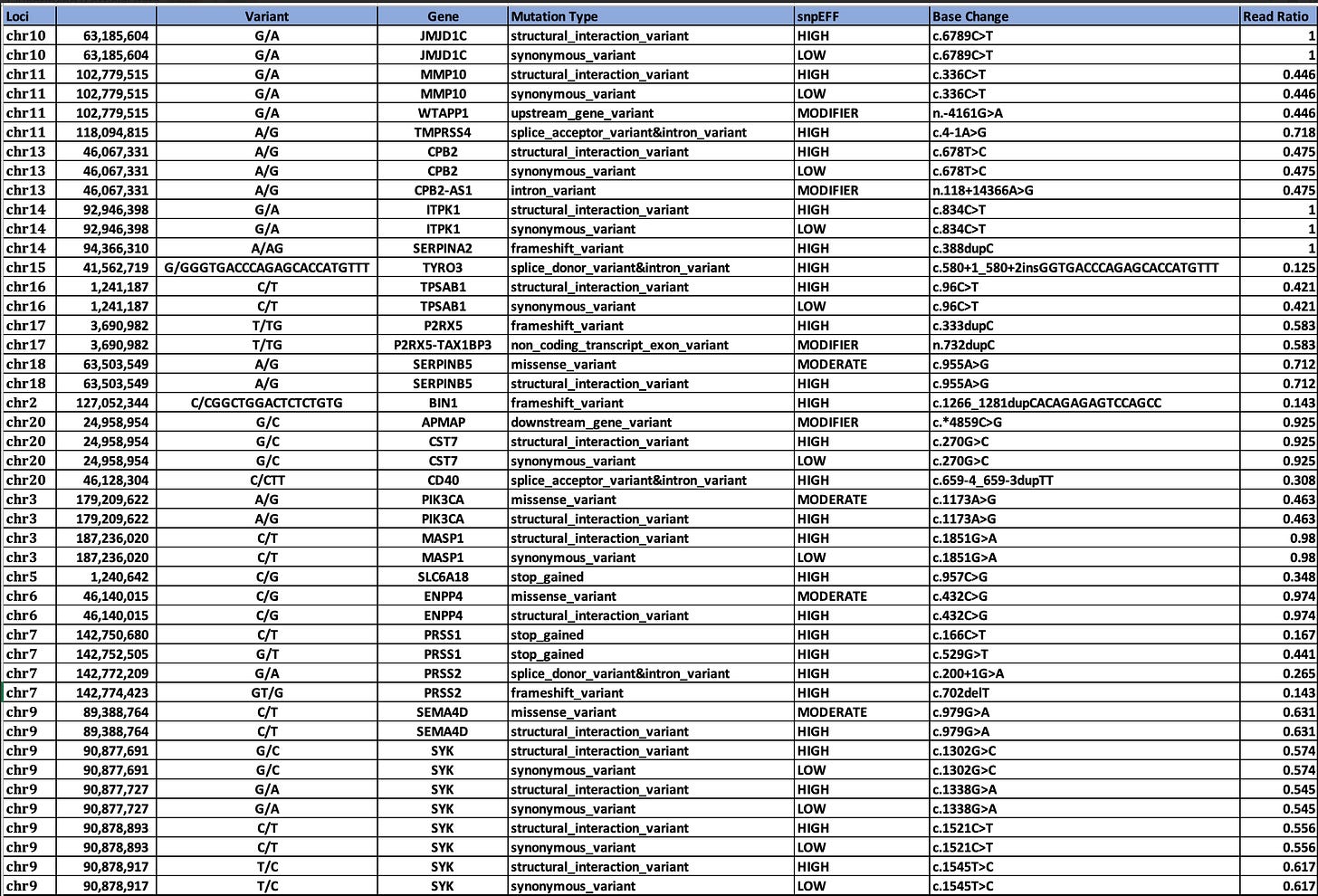 If you intersect the 2312 genes with the HIGH impact variants from snpEFF, we in fact, come up with more interesting hits that might be related to this phenomenon.